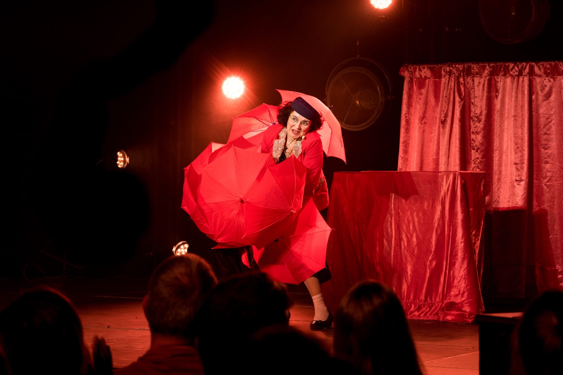 Dans ce solo clownesque, Merilyn puise dans l’énergie du public pour enchaîner, à un rythme endiablé, les rites et routines de mentalisme, prestidigitation et transformisme.