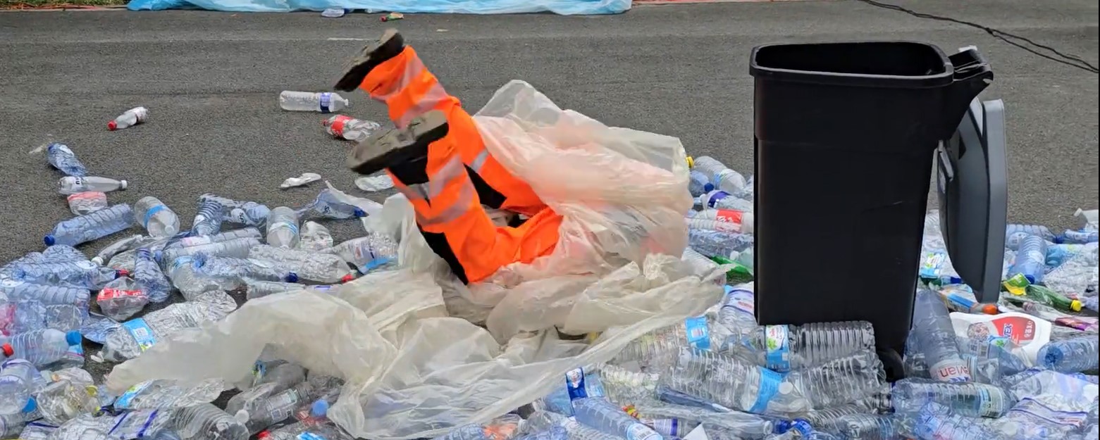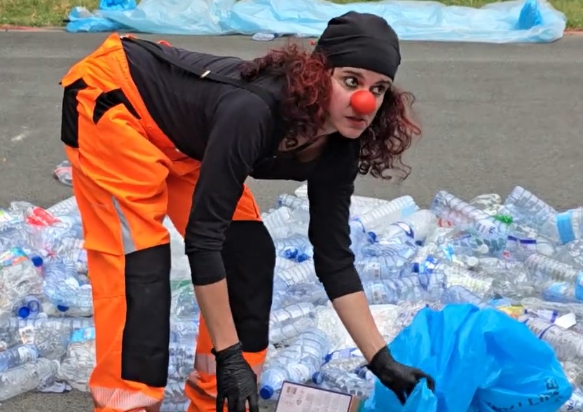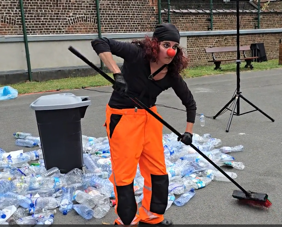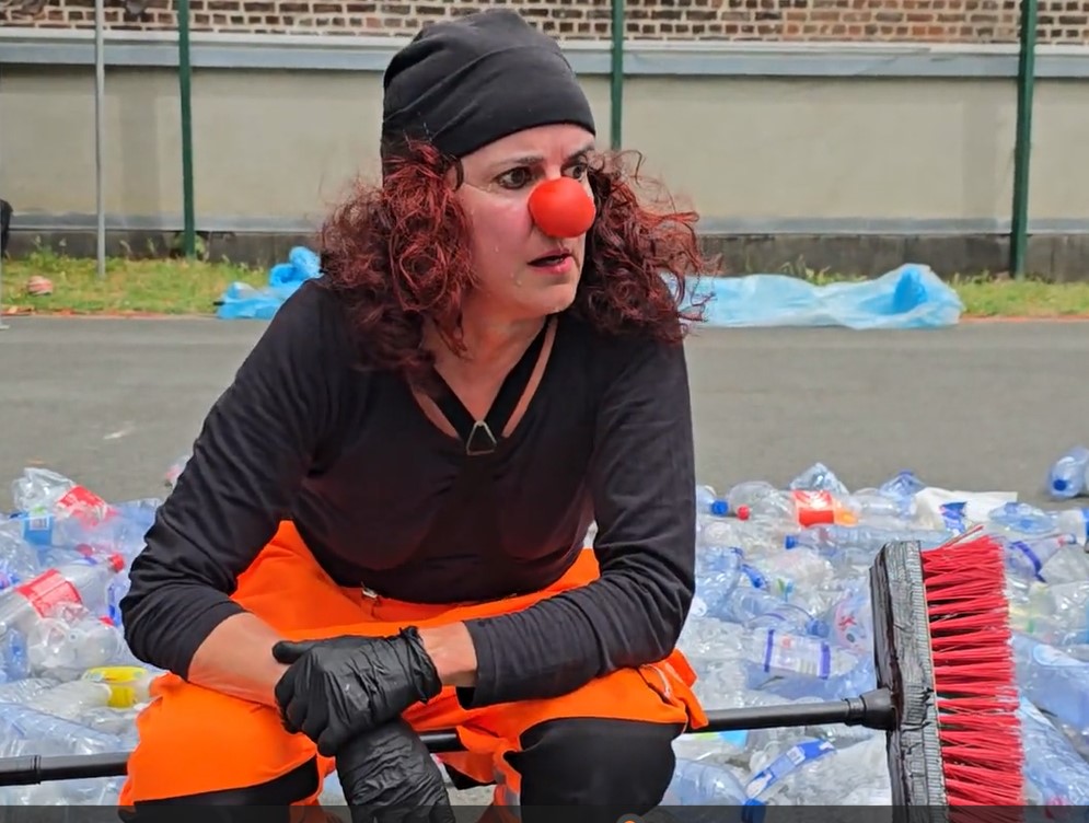 Renata, clown éboueuse depuis plus de trente ans, poursuit inlassablement sa mission : nettoyer, rétablir un peu d’équilibre dans un monde saturé de déchets. Ses gestes, porteurs de bonne volonté, se heurtent pourtant à l’absurdité de décisions politiques à contresens, tandis que les plastiques débordent, s’imposent et agressent. Dans sa mission, les déchets plastiques de toutes formes deviennent des partenaires : manipulés, détournés et partagés, ils transforment le nettoyage en un combat burlesque.